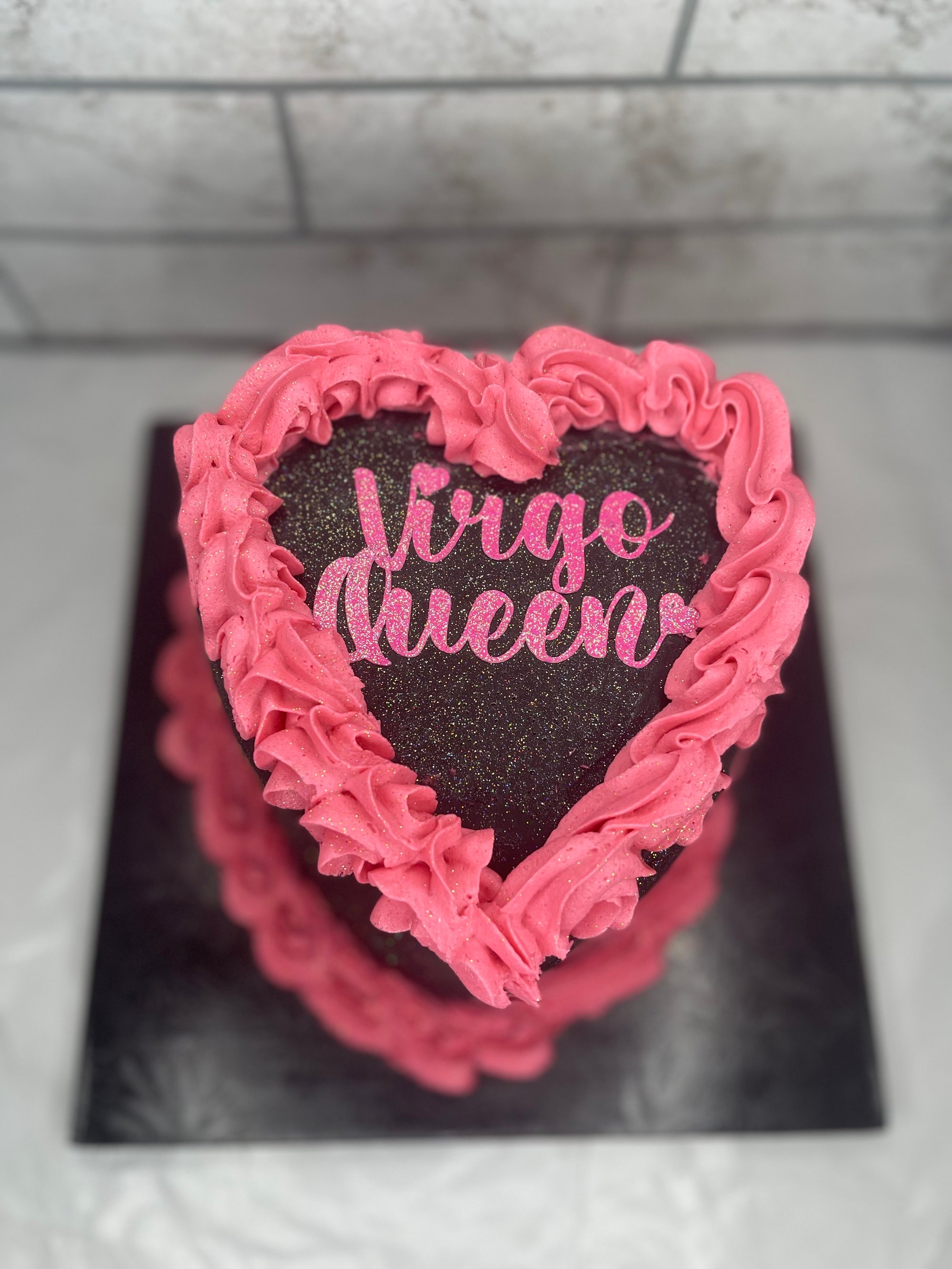 We are such a fan of our Vintage heart shaped cakes 💝!!! This cake has soooo many options, from the color to the saying! The best Celebration cake evvvrrrrr! Please add a note on the Color and Phrase for the cake! The words are this cake are not edible! But can be make edible with chocolate letters! Decorated in American Buttercream.
