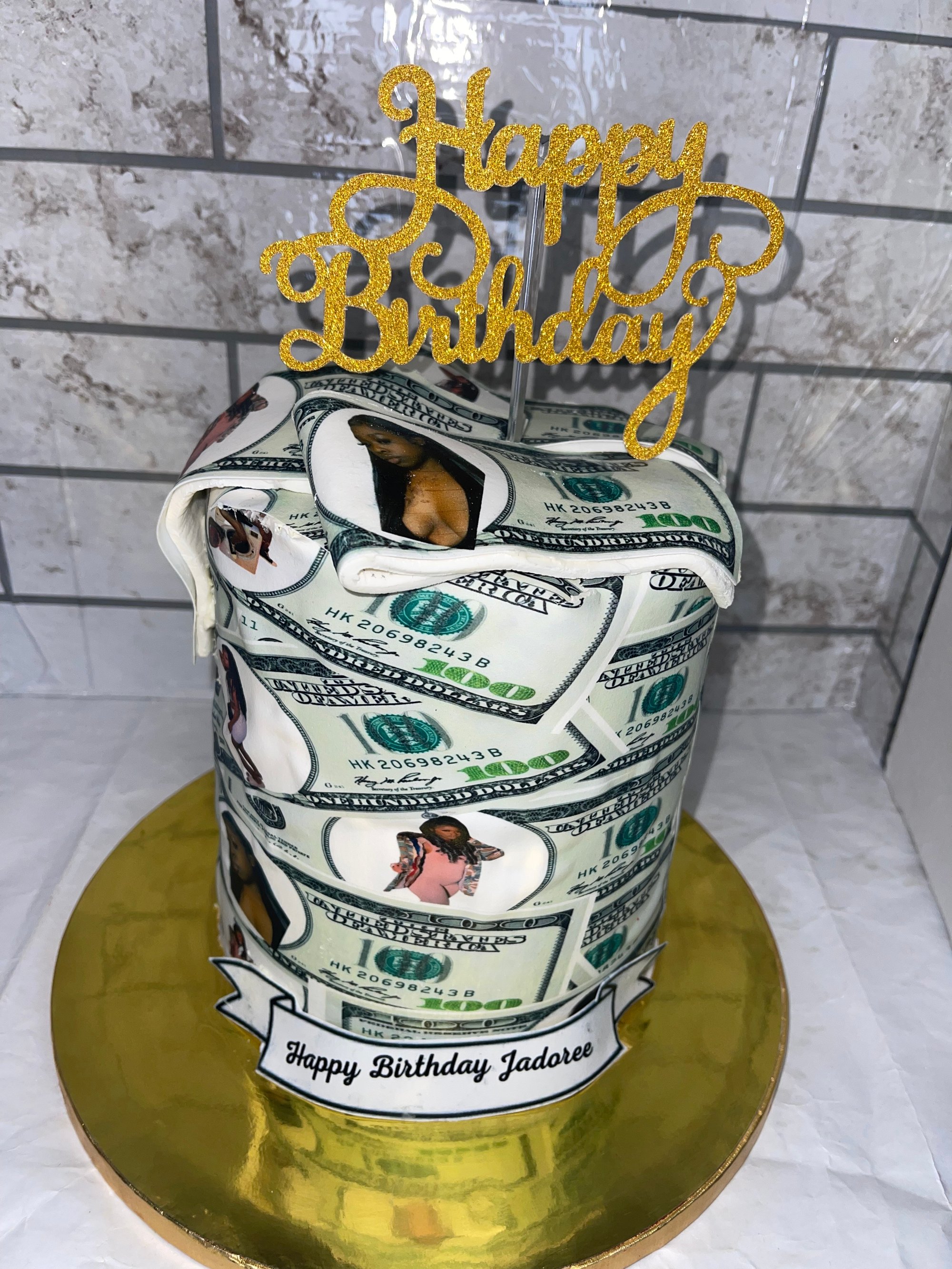This beautiful cake can be customized by adding your beautiful picture on a 1 hundred dollar bill! This design is available in 6inch or 8inch cake! Want to customize it some more just ask us and we'll be sure to customize the cake of your dreams!!!!! Dollar Dollar Bill ya'lllll!