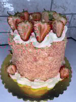 6 inch 4 layer Strawberry Crunch cake with strawberry and vanilla cake layers.