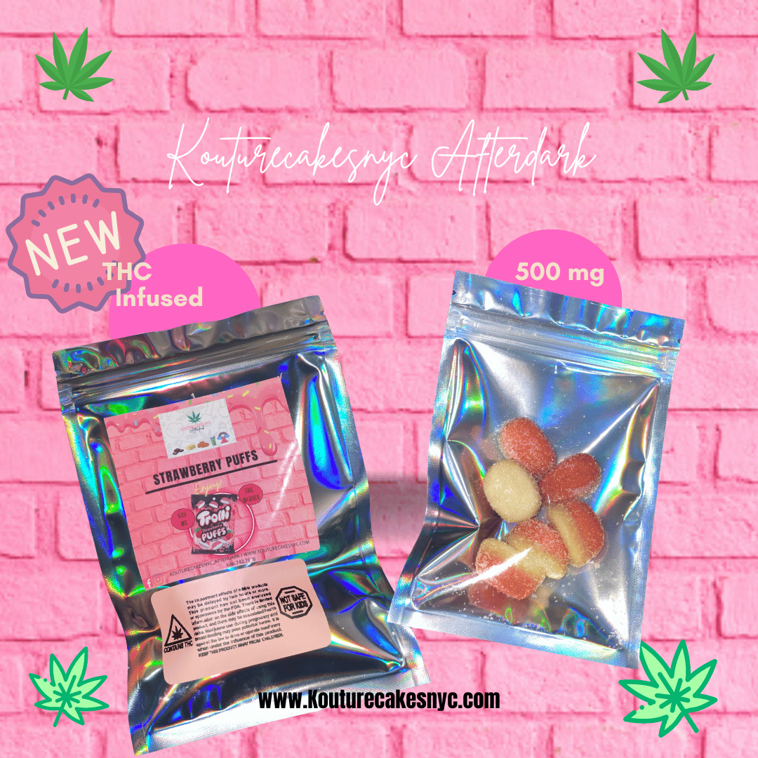 Canna 420 infused Strawberry Puffs are strawberry flavored infused with THC gummies with a soft and fluffy texture, coated in a tangy sweet goodness that will have you feeling amazing! 6 strawberry puffs are included in each Package 500MG
